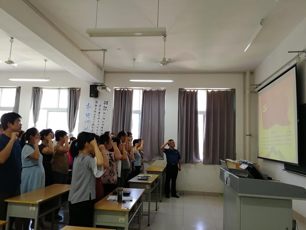 活动最后,组织全体党员面对党旗,举行宣誓仪式,重温入党誓词。激励党员坚定信念、牢记宗旨,不断巩固和增强为社会主义和共产主义事业奋斗的信念,发挥先锋模范作用。