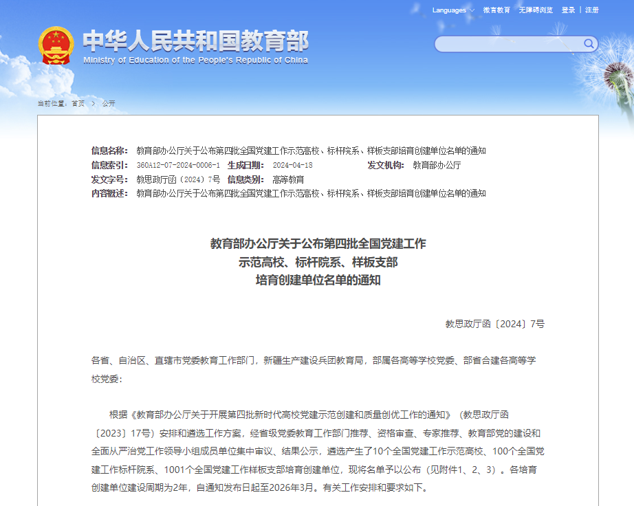 近日,教育部办公厅公布了第四批全国党建工作示范高校、标杆院系、样板支部培育创建单位名单,共遴选产生了10个全国党建工作示范高校、100个全国党建工作标杆院系、1001个全国党建工作样板支部。永利y23455教师第二党支部成功入选“全国党建工作样板支部”培育创建单位。