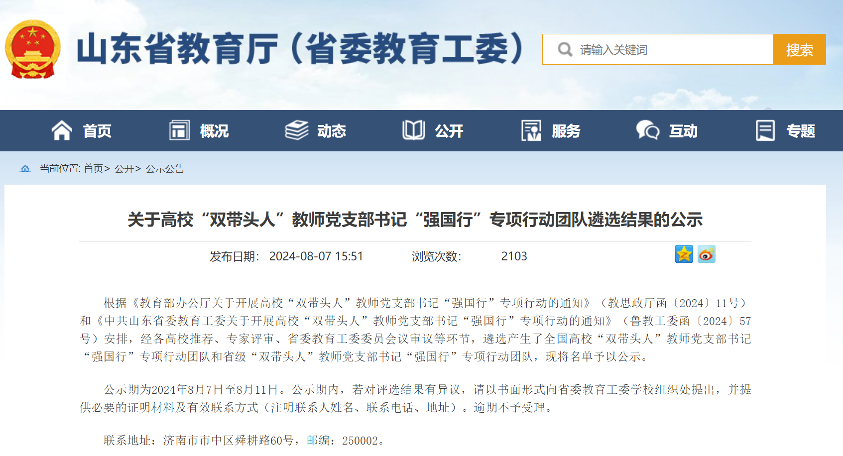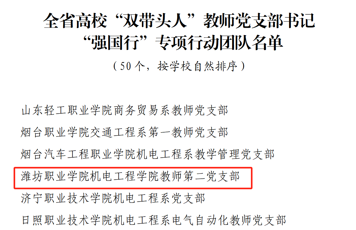 近日,山东省教育厅公布了高校“双带头人”教师党支部书记“强国行”专项行动团队遴选名单,本次评选经各高校推荐、专家评审、省委教育工委委员会议审议等环节,共遴选产生了72支全国高校“双带头人”教师党支部书记“强国行”专项行动团队和50支省级“双带头人”教师党支部书记“强国行”专项行动团队。永利y23455教师第二党支部成功获评全省高校“双带头人”教师党支部书记“强国行”专项行动团队。