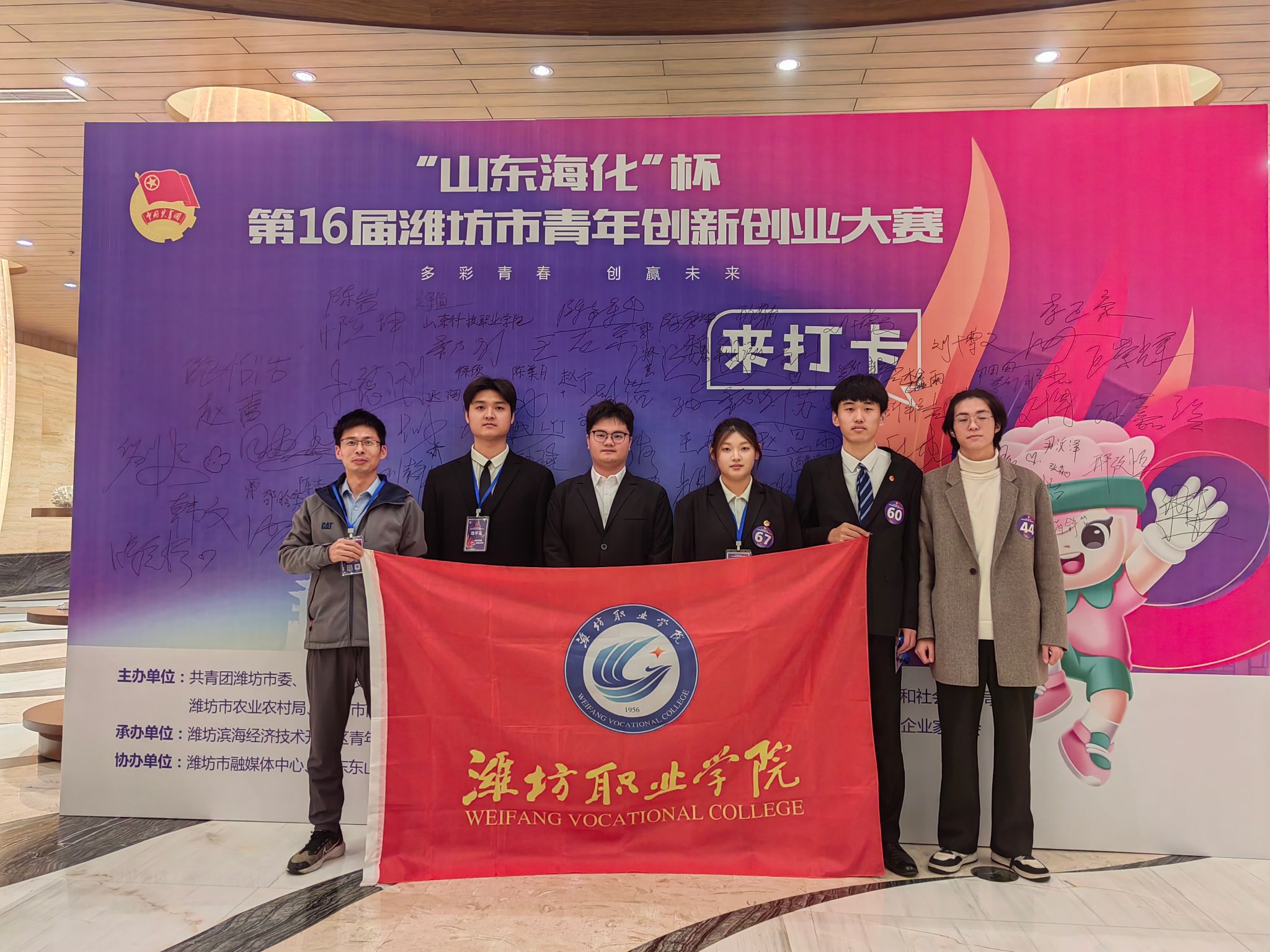 12月19日,“山东海化”杯第十六届潍坊市青年创新创业大赛决赛暨颁奖仪式在潍坊市融媒体中心举办。我院学子陈玉轩、郭淑芸、梁超、刘璐璐、石昊等5名同学荣获“潍坊市青年创业之星”荣誉称号。