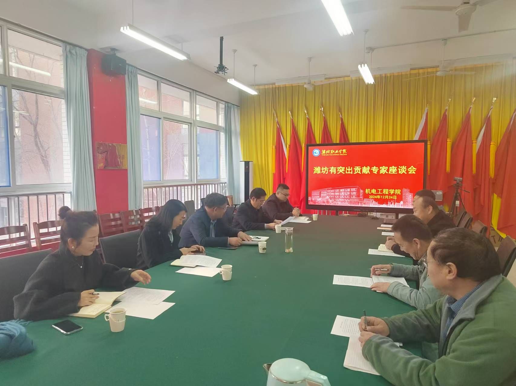 近日,我院教师王晓军获评“潍坊有突出贡献专家”。12月24日,学院党委副书记韩瑞东,党委委员、纪委书记、监察专员王国成,党委委员、办公室(统战部)主任(部长)刘志艳,党委委员、组织人事处(离退休工作处)处长于涛,教师工作部部长一行赴永利y23455参加潍坊有突出贡献专家座谈会,永利y23455全体班子成员和王晓军老师参加了此次座谈。