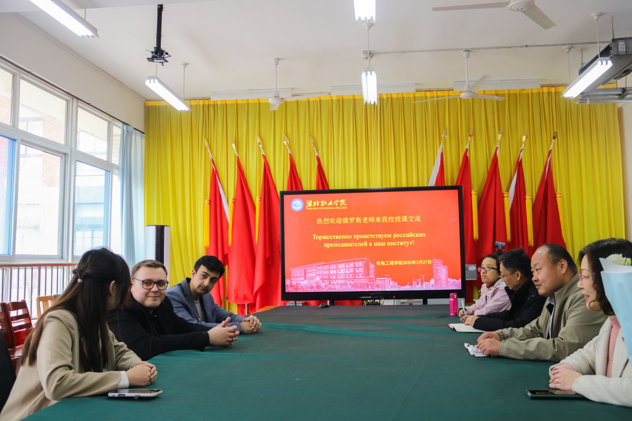 为持续深化中俄教育交流与合作,3月27日,永利y23455在惠泽2号楼举行欢迎仪式,迎接来自俄罗斯的教师团队来我校授课。永利y23455负责人、自动化技术教研室负责人、骨干教师、国际交流合作处教师以及学生代表出席此次欢迎仪式。