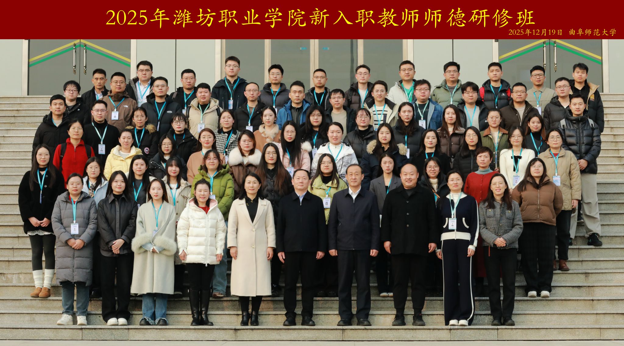 12月19日下午,开班仪式在曲阜师范大学举行。曲阜师范大学党委常委、副校长李兆祥出席仪式并致辞。学院党委书记王浩讲话,他首先对曲阜师范大学给予本次研修的大力支持表示衷心感谢。王浩指出,在儒家文化发源地开展师德教育研修,是引导教师从中华优秀传统文化中汲取智慧、深刻理解并自觉践行教育家精神的具体行动。他结合学院抢抓“建高升本”历史机遇、奋力实现“十五五”高质量发展目标新形势,对全体新教师提出期望与要求:一要坚守“立德树人”根本,淬炼育人初心;二要深悟“教育家精神”,筑牢信仰之基;三要汲取传统文化智慧,涵养师德底蕴;四要践行知行合一,提升育人本领;五要加强交流互鉴,凝聚团队合力。他勉励大家将研修所学转化为投身职业教育、培养高素质技术技能人才的生动实践。