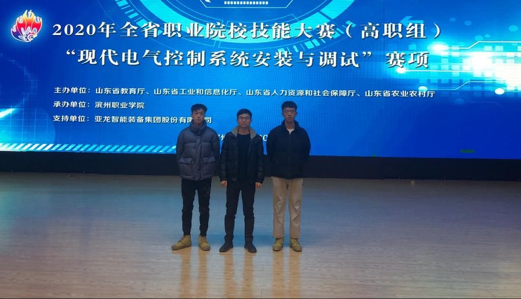 12月19日,2020年山东省职业院校技能大赛高职组“现代电气控制系统安装与调试”大赛在滨州职业学院举行,全省40所院校参加比赛。永利y23455鲁成俊、吴硕2位同学在指导教师侯绪杰、石海龙的带领下,沉着应战、配合默契、操作娴熟,最终获得山东省高职组二等奖。