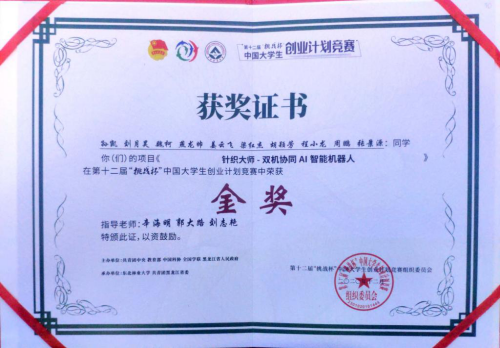 12月9日,第十二届“挑战杯”中国大学生创业计划竞赛全国决赛在东北林业大学落下帷幕,我院孙凯等同学的“针织大师-双机协同AI智能机器人”项目荣获金奖,辛海明、郭大路等老师荣获全国优秀指导老师奖。学院同时获得“挑战杯”全国优胜杯,全国仅10所高职院校获此殊荣,是二十多年来山东省唯一获得“挑战杯”中国大学生创业计划竞赛金奖的高职学校。