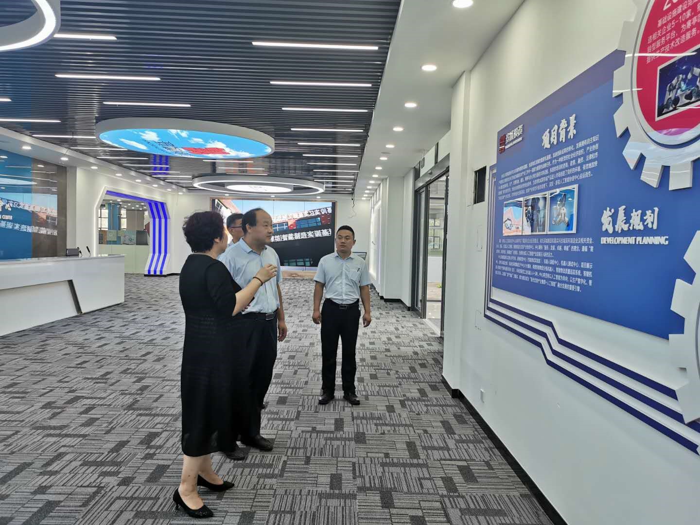 山东新锐智能机器人有限公司总经理刘桂欣带领大家参观了涵盖无人机、机器人、VR、3D打印等众多科技创新类课程的中德智能制造实训基地和囊括机器人装配中心、测试中心、研发中心、项目展示中心、自动化系统集成中心等六大模块的新锐人工智能协创中心,为进一步提升名师工作室的建设提供了思路和借鉴。通过沟通与交流,双方就以名师工作室为平台,共同研究制定专业建设发展规划,不断优化专业课程体系,适时更新调整专业实训课程内容,指导实训教学,提升学生的实践动手能力;以名师为核心,以校企合作的方式,积极开展专业课程开发、项目课程教材开发及教学方法研究等工作达成了共识。