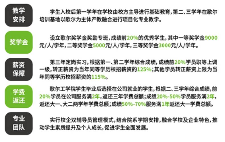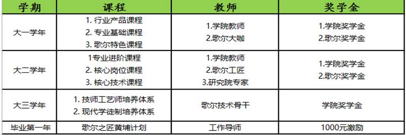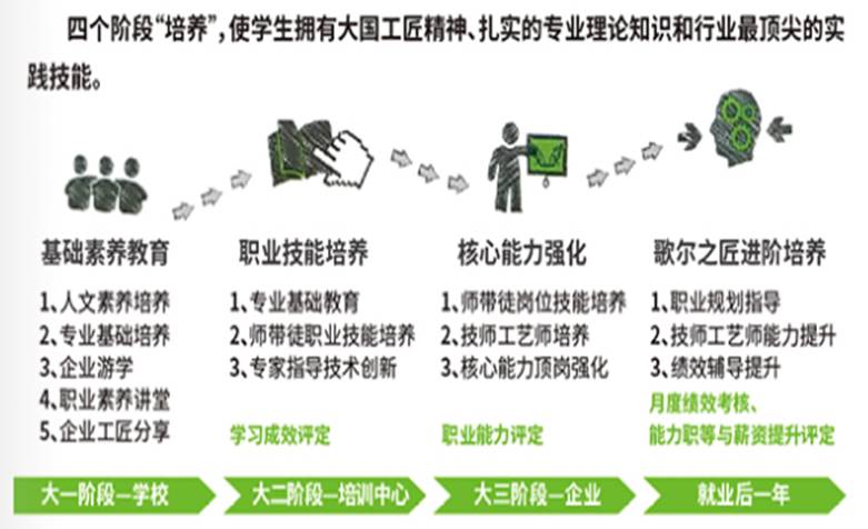 歌尔“匠造专班”是歌尔股份有限公司与yl23455永利集团联合招生,共同培养的一种新型班级。是顺应国家职业教育改革的新模式。“匠造专班”的培养将企业优势与学校优势有效互补结合,利用企业的世界前沿顶尖设备、业务领域的资深专家以及卓越的技术工艺与学校专业的人才培养模式完美融合,使匠造专班培养出的学生更加适应当前社会需求。