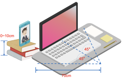 将手机固定合适位置,确保能采集到考生正面和大部分考试环境。如图示: