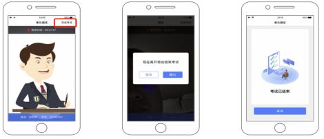 (3)考试开始后,选择结束考试,后台将记为“考生已正常交卷”;强行退出APP或掉线,将视为“离线”异常。