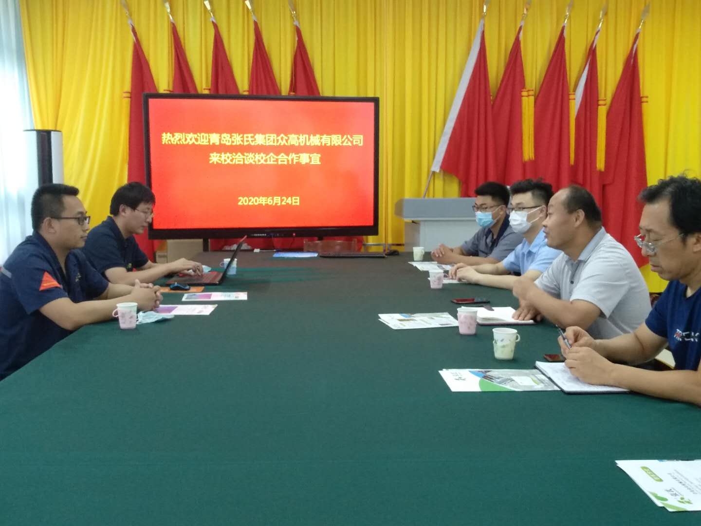 6月24日下午,青岛张氏集团众高机械有限公司副总经理孔令盈一行2人到永利y23455洽谈电梯专业校企合作。永利y23455院长解永辉、产学研合作办公室、校外电梯专业兼职教师及相关专业教师参加洽谈会。