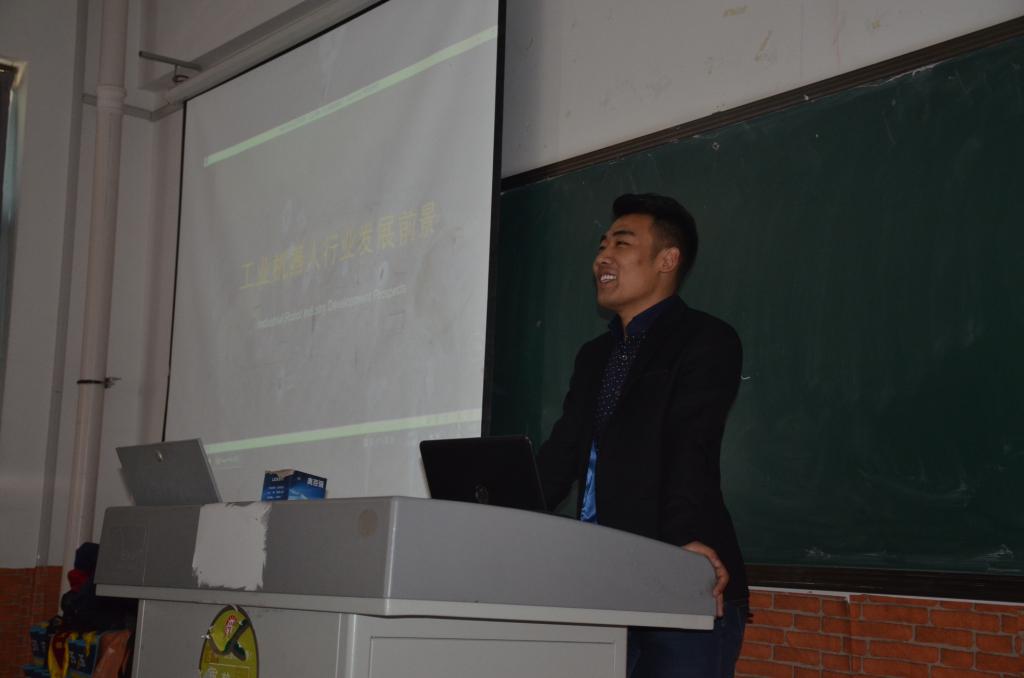 4月26日,山东新锐智能机器人有限公司马程程经理一行3人来到我院,为2017级和2018级工业机器人班59名同学带来了一场精彩的专题报告。
