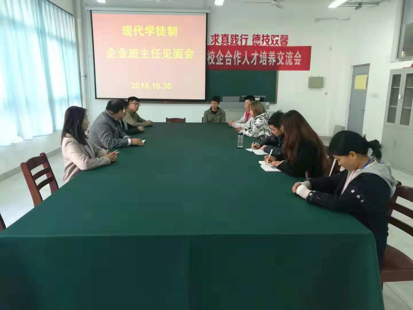 10月31日上午永利y23455在惠泽2号楼A226会议室召开现代学徒制企业班主任见面会。该院主要负责同志,学院相关专业班级班主任、企业常驻学院班主任及学徒制试点专业班级学生代表参加见面会。