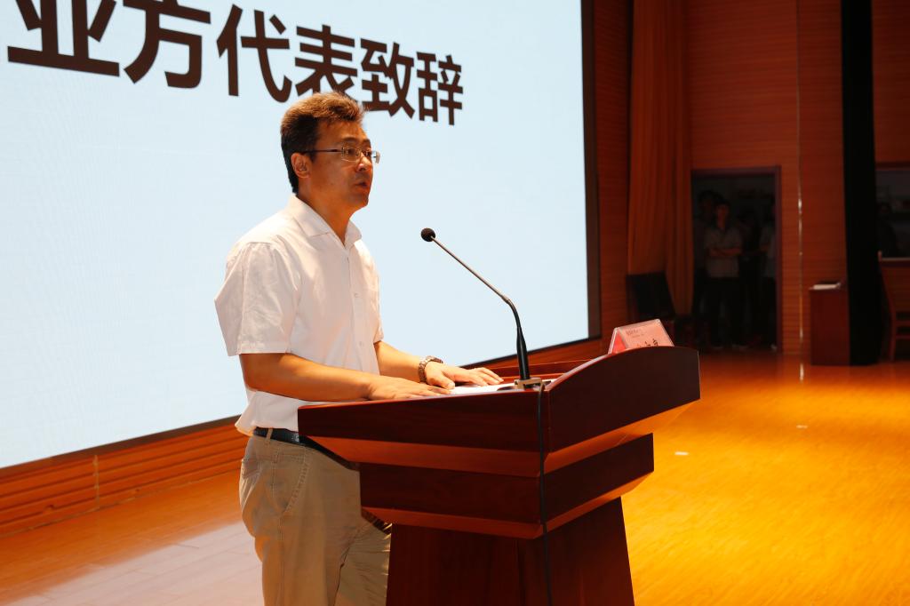 歌尔自动化事业群总经理吴爽昌代表公司讲话。讲话中介绍了歌尔与yl23455永利集团10年校企合作成果。表示未来将和我院共同加快教学内容和配套资源的更新,着重推进全新、全功能定位的教学实训平台建设;强化培养模式的标准化,与行业生产技术发展规律有机结合;以歌尔准员工的标准培养学生。校企双方将从战略对接、供需对接、品质对接、资源对接、优势对接、文化对接几个方面夯实产教协同发展的基础,持续创新,为民族制造业培养优秀的人才,为制造2025战略做出贡献。