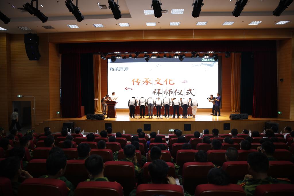 鞠躬行礼、双手敬茶,师傅回礼、向学徒赠礼,签订师徒协议书。9月18日上午,一场温馨而又隆重的现代学徒班拜师仪式在yl23455永利集团图书馆报告厅举行,展现了我院校企共建的“现代学徒制项目”深度融合的新成果、新局面。歌尔精密制造事业群总经理刘凯、歌尔自动化事业群总经理吴爽昌、yl23455永利集团副院长贺志强、李瑞昌,教务处、科技处领导、永利y23455主要负责人和教师代表,以及2016级现代学徒制班优秀学员、2017级现代学徒制班全体学员、2018级新生、军训教官等450余人参加了此次活动。