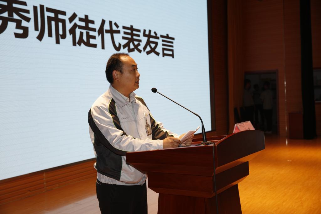 yl23455永利集团副院长李瑞昌致辞,致辞中向歌尔集团的慷慨捐赠表示感谢,对即将付出心血的各位师傅表示感谢,向拜师学艺的各位学徒和获得歌尔奖学金的6名同学表示热烈的祝贺。随后介绍了近三年来我院数控技术专业与歌尔开展学徒制培养的历程及取得的山东省校企一体化示范办学院校与企业、山东省现代学徒制试点项目、教育部现代学徒制试点项目等成绩。并对即将结对的师徒寄予三点希望:希望师傅带徒要三管齐下,带徒形式不拘一格,师徒团结创新、共谋发展。最后要求观礼的2018级新同学,构筑当代大学生的“中国梦”,努力做到知行统一、脚踏实地。