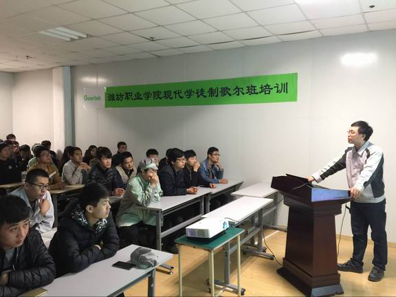 2017年9月19日,“yl23455永利集团现代学徒制歌尔班开班仪式暨学徒拜师仪式”在歌尔股份有限公司的培训中心隆重举行。李瑞昌副院长和企业副董事长出席了仪式并作出重要讲话,拜师仪式得到潍坊电视台直播潍坊等知名栏目的全程报道。