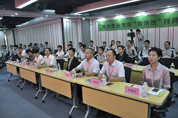 9月19日上午,我院数控技术专业现代学徒制班拜师仪式在歌尔股份有限公司会议室举行。学院副院长李瑞昌、歌尔股份有限公司副总裁李菁华出席。教务处、科技处、永利y23455负责人,歌尔股份有限公司校企合作负责人和工作人员,以及学徒制班全体师徒参加。