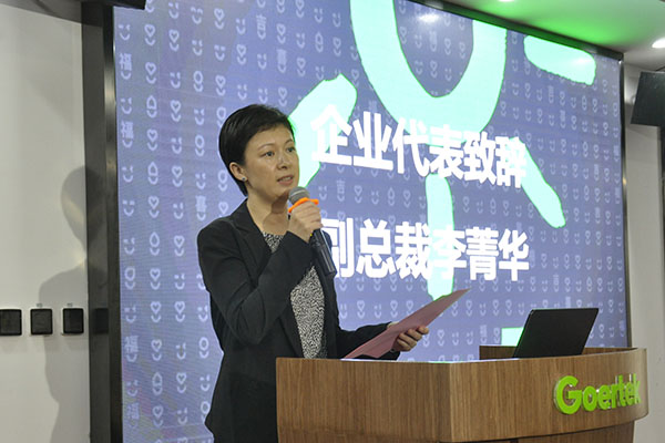 李菁华致辞。她代表企业对加入现代学徒制班级的同学表示热烈欢迎,希望同学们在歌尔公司发挥自己特长,将课堂学习的知识技能应用于实践,在学习本领、提高技能的同时为公司发展贡献力量,与企业共同成长。